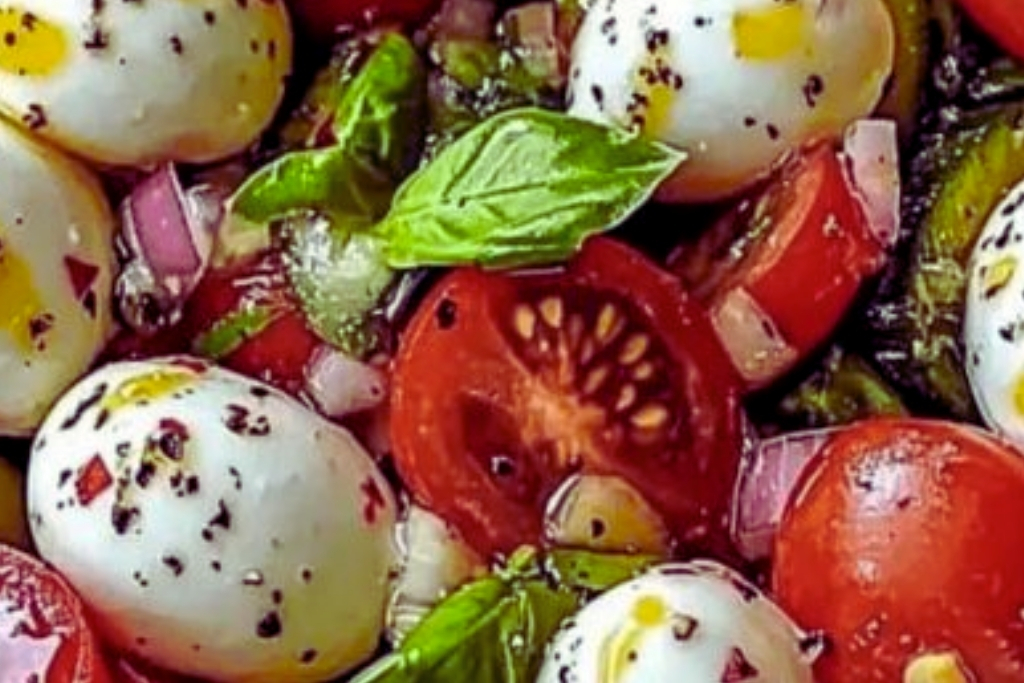 Ela sempre fez questão de usar ingredientes simples e econômicos, isso nunca diminuiu o sabor de suas receitas, hoje faço essa receita de Salada Caprese sempre, todo mundo é apaixonado por ela. Fiz alguns ajustes para deixar mais saborosa mas sem perder a originalidade, é receita padrão da roça, faça e se prepare para receber uma chuva de elogios.